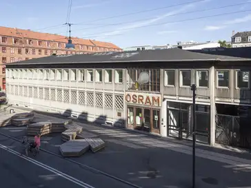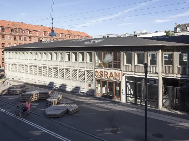 Osram House was constructed in 1953 as an office and warehouse. With an unpolished concrete exterior and large interior rooms, the building is a typical example of industrial-era architecture. The municipality of Copenhagen acquired Osram House in 1980 − it was to become a landmark building. Located in Nørrebro, one of the city's most diverse neighbourhoods, Osram House is now a culture and community centre.