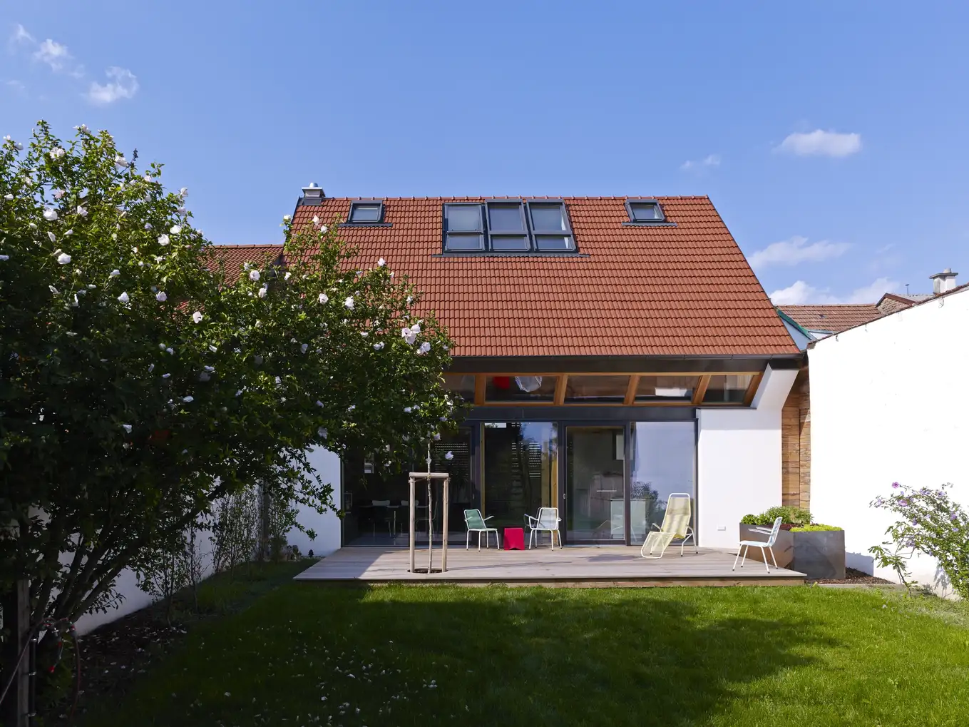 The Döllinger-Tsao family did not wish to install a mechanical ventilation system. So, at the early design stages, Rührnschopf determined the ideal positioning of the facade and roof windows that would provide the necessary air supply and exhaust openings.