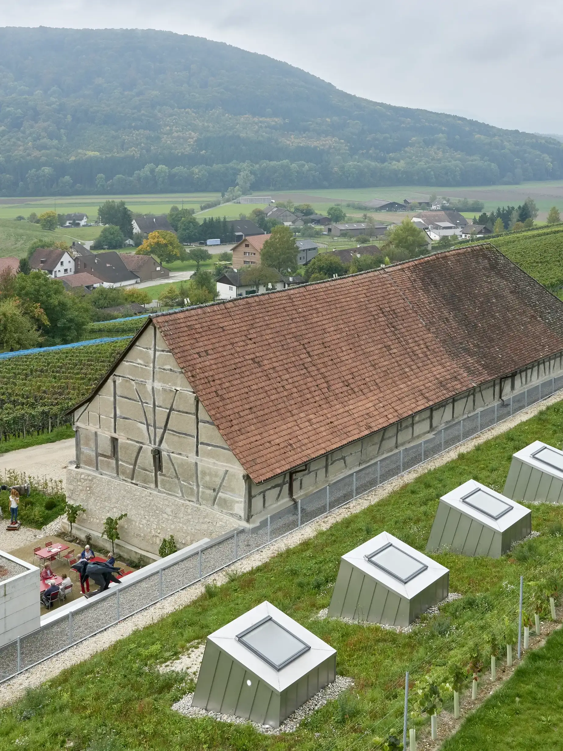 "Our idea, although extravagant at first glance, was very rational. We did not want to compete with the existing building, as we like its massive appearance and solitaire appearance in the landscape. So we proposed a non-building, rooms in the hill underground, behind the barn."