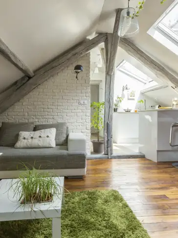 Prisca (homeowner) has always liked and lived in attic apartments. After earning a degree in architecture and interior design, she wanted to create a showcase. The young architect used her skills to remodel this 60 m² attic apartment. She loves this “cocooning space”, especially the idea of being in contact with the sky and the atypical space complete with visible wood frame. She invested huge amounts of time and energy into this 6-month project.