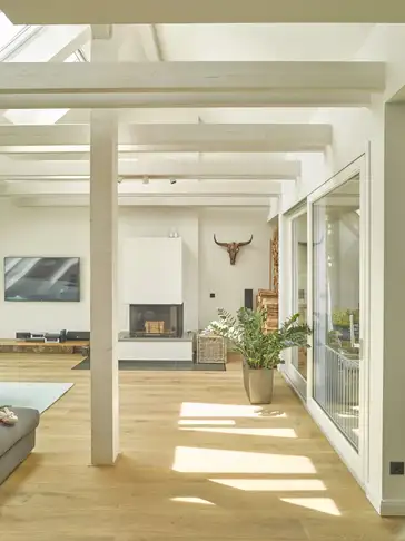- Simple ventilation: In addition, the fact that the VELUX windows are fitted with the Balanced Ventilation window ventilator ensures sufficient air exchange according to DIN 1946-6, meaning that no additional controlled ventilation is required. "This also allows us to save a lot of energy that would otherwise be needed," says the homeowner.