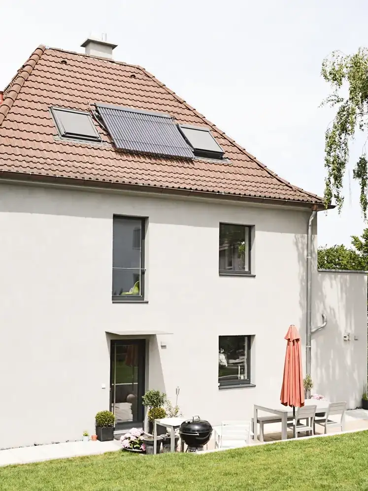 The atrium is only equipped with individual windows and fixed glazing. But a central VELUX electric window floods the entire airspace with natural light from the south. Thanks to the electric motor, roof windows and heat protection awnings can be conveniently operated by radio control for improved air conditioning.