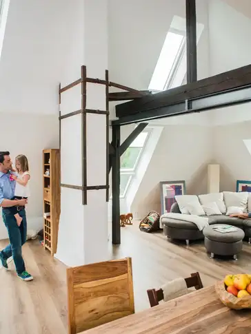 The first plans for the conversion also provided for the construction of dormer windows to let light into the flat under the roof. However, as the building is listed, strict heritage requirements had to be met; the planned dormers would have represented a major intervention in the roof surface, destroying part of the building in its original and preserved condition. "The solution was roof windows," explains Thorsten Trojan.