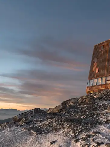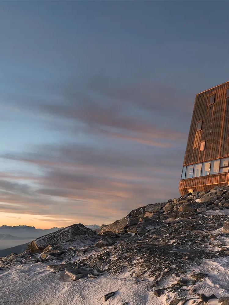 "Dusk in the mountains is a very special and calm time, and I think it's beautiful to watch the spectacle also from the inside of the building. Some people wanted us to mount TV screens, but we refused - one goes up to be immersed in nature."