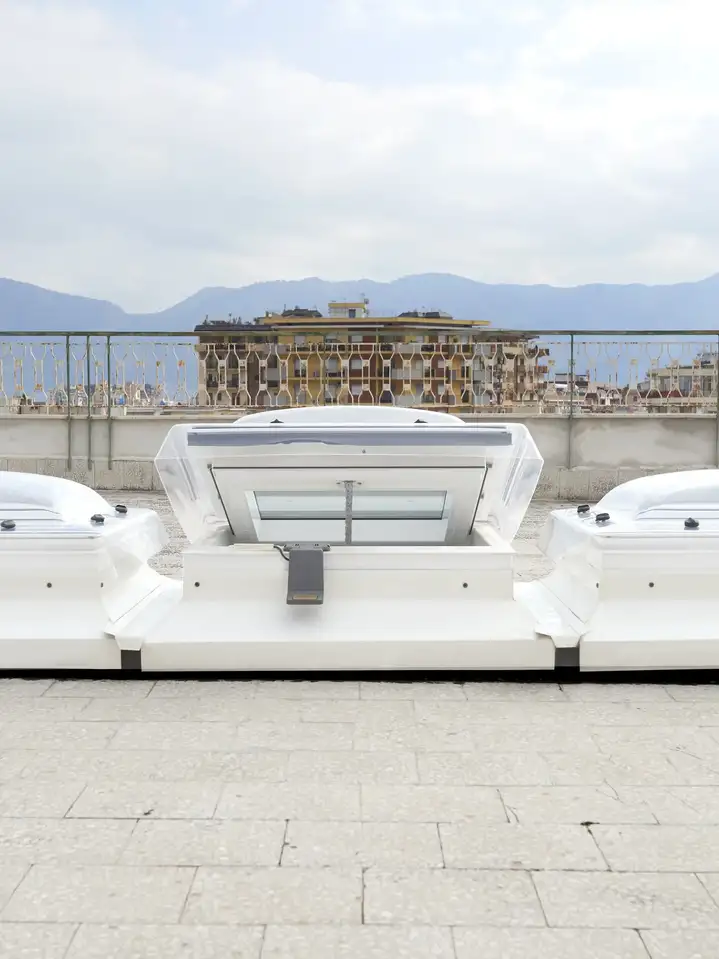 - Light and ventilation where they are needed: the roof window, inserted above the worktops, enables the kitchen to be used without switching on a light and allows air to flow in and out as necessary.